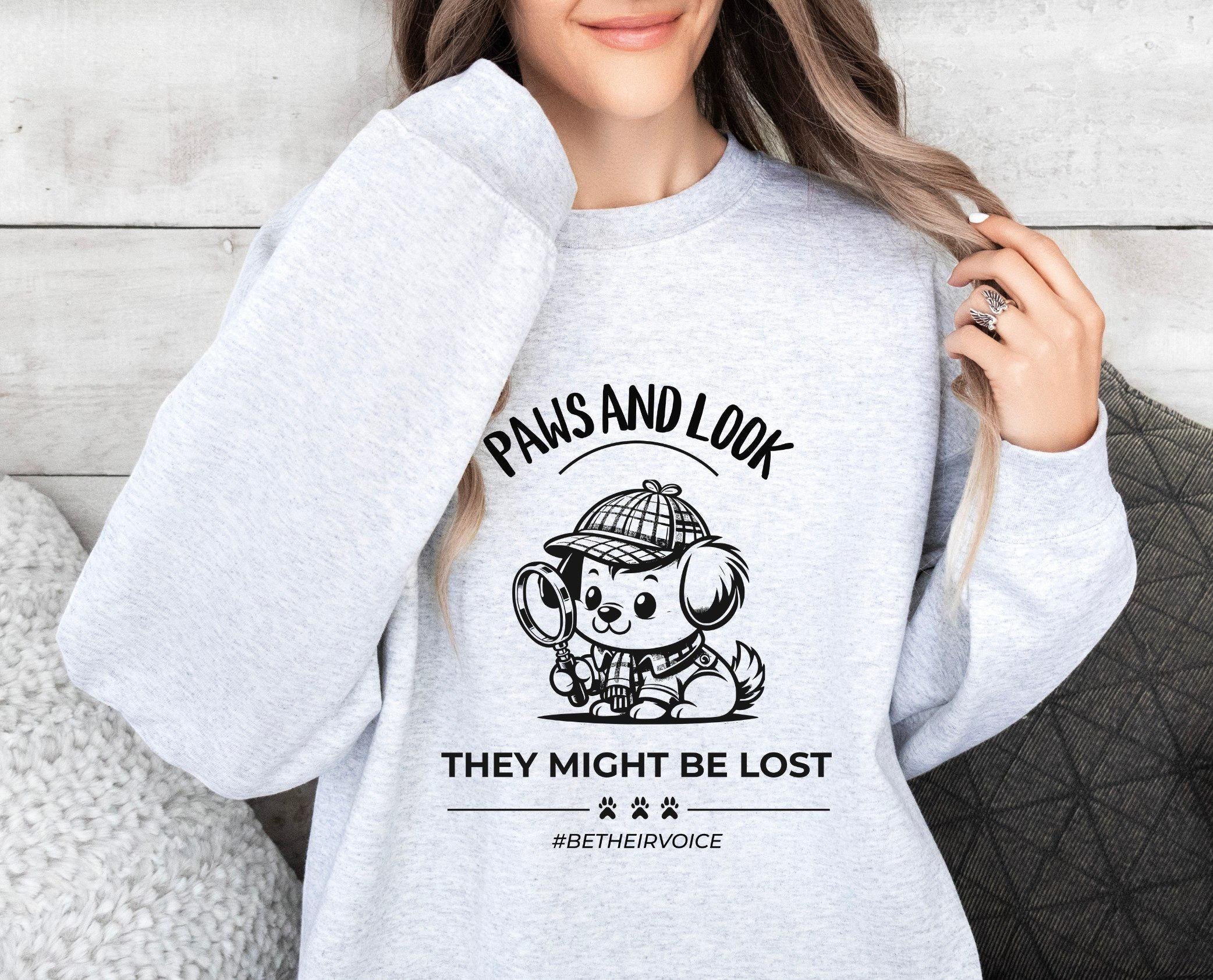 Stay cozy while spreading an important message with our “Paws and Look – They Might Be Lost” sweatshirt! 🐾💛
