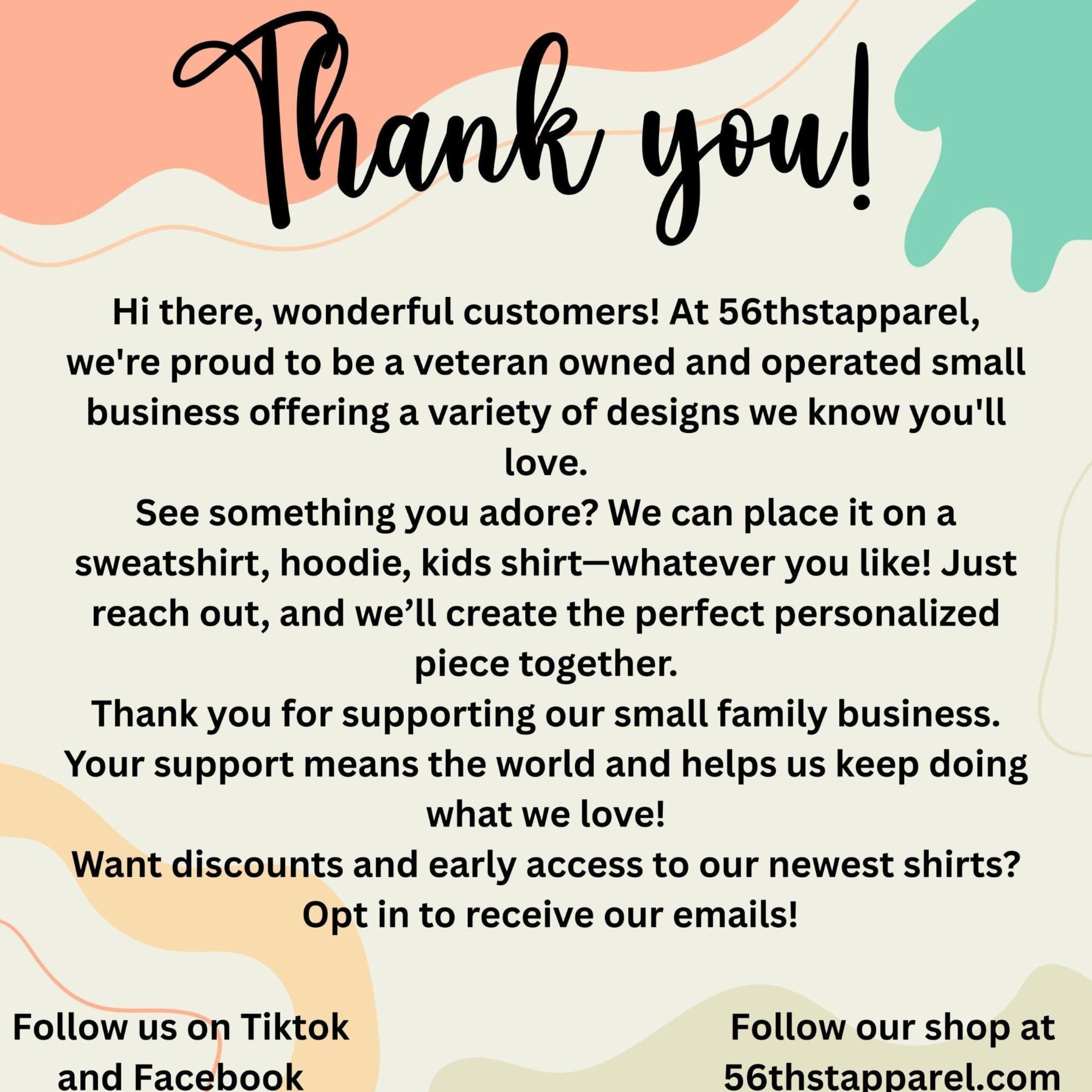 🖤 From all of us at 56th St Apparel — thank you for shopping small and supporting our veteran-owned business! We appreciate every single order and customer.