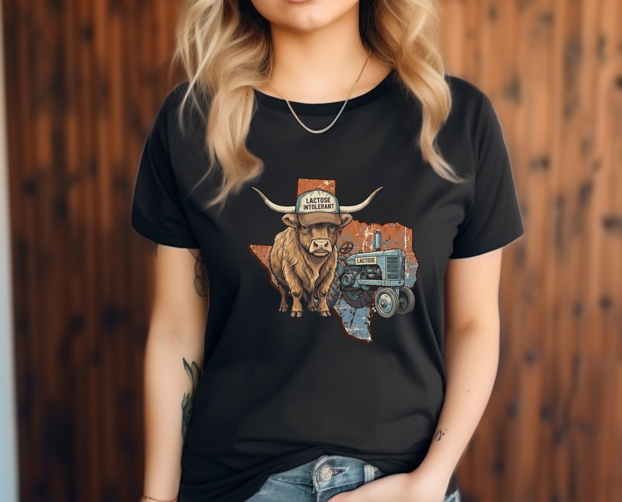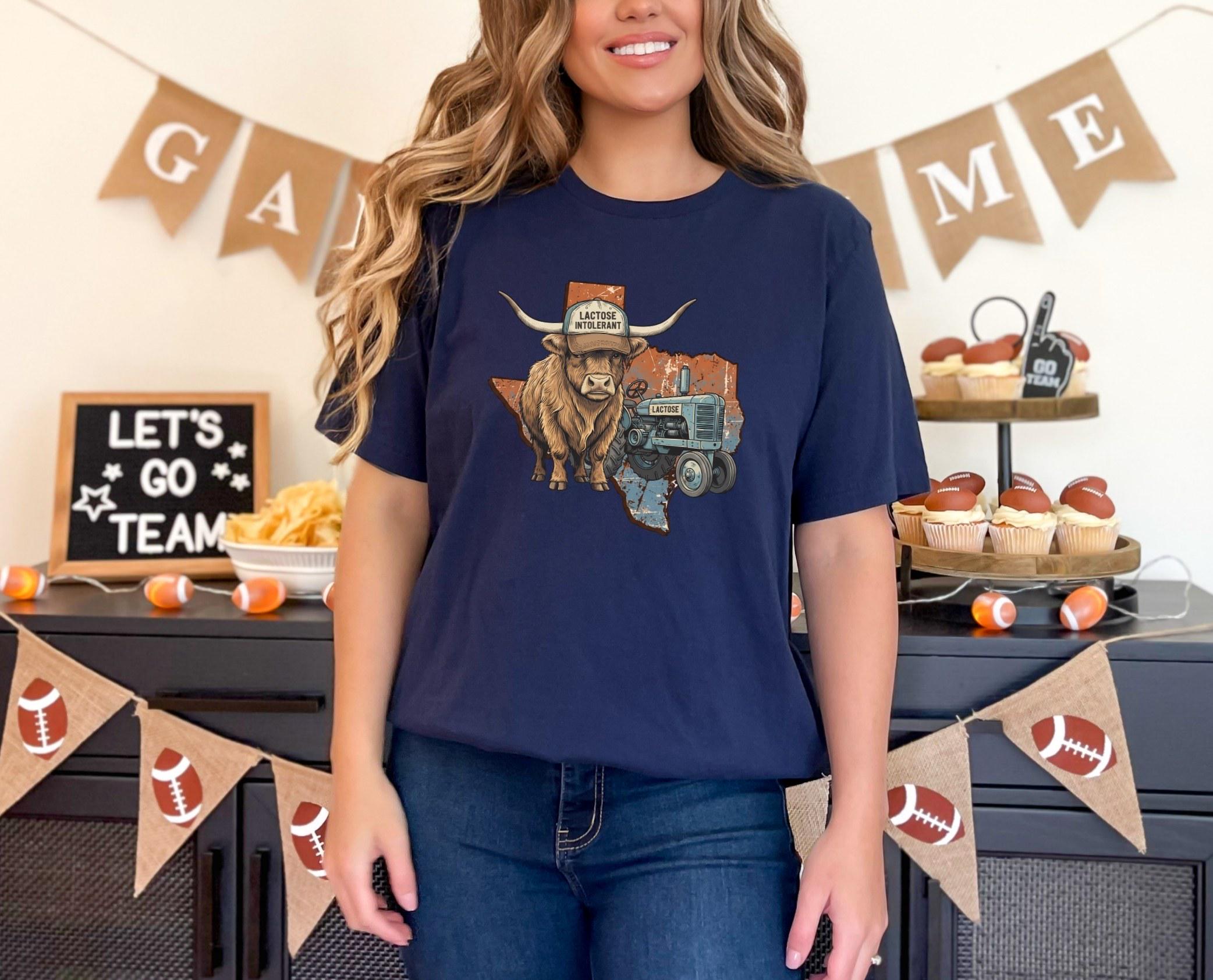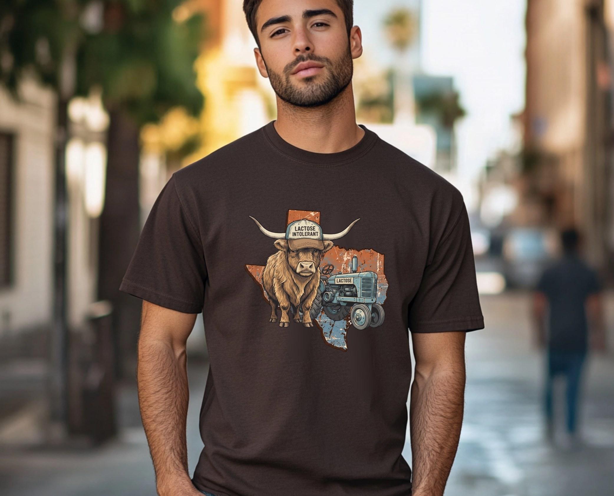 Whether you’re a proud Texan, a cow lover, or just someone who can’t do dairy, this tee is guaranteed to get laughs. Soft, comfortable, and ideal for everyday wear—great for rodeos, fairs, casual outings, or gifting to your favorite country-humor fan.