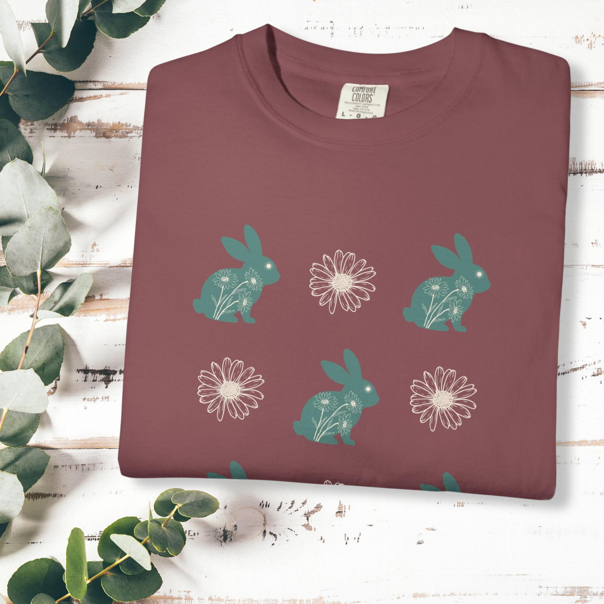 Introducing our adorable t-shirt featuring a charming pattern of rabbits and daisies! Perfect for nature lovers and anyone who enjoys a whimsical touch in their wardrobe. Made from soft, breathable fabric, this tee offers both comfort and style. Great for casual outings or cozy days at home, it pairs beautifully with jeans or shorts. This unique design captures the joy of spring, making it a delightful gift for friends or family. Embrace your playful side with this delightful rabbit and daisy t-shirt today!